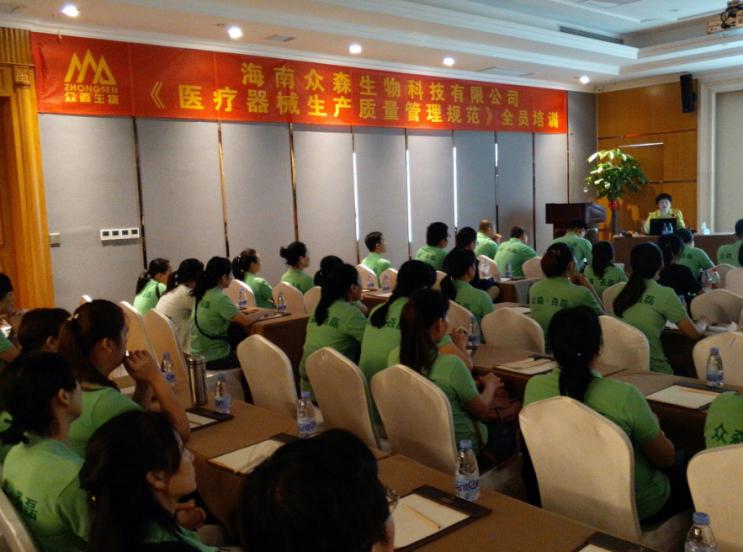 為更好地貫徹執行《醫療器械生產質量管理規范》,提高生產和質量管理水平,海南眾森生物科技有限公司全體員工于2018年4月3日上午在海南維也納國際酒店多功能廳舉辦了《醫療器械生產質量管理規范》全員培訓。